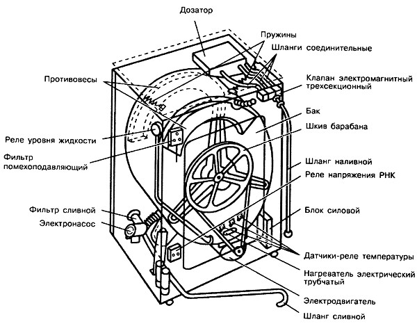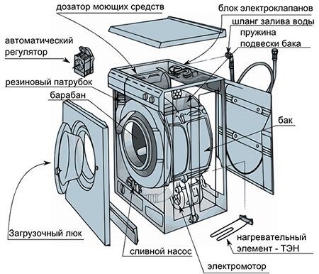 Не всеки потребител може да разбере електрическата верига на пералната машина, но няма да навреди да научите за основните системи. Снимките по-долу показват следните компоненти, които се намират в почти всяка перална машина:
